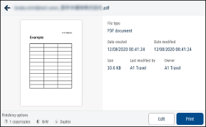 В случае сбоя обработки отображается сообщение об ошибке. Повторно выберите файл и повторите печать.