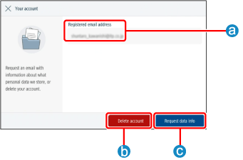 Удаление учетной записи (это означает, что приложения Cloud Connector, кроме функции печати электронной почты для гостей, больше нельзя будет использовать)