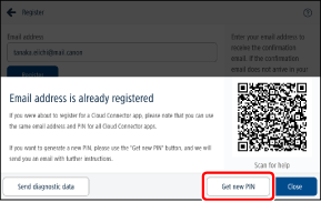 Если адрес электронной почты уже зарегистрирован, PIN-код, связанный с этим адресом электронной почты, уже был зарегистрирован. Используйте этот PIN-код.