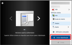 Se o formato de ficheiro for PDF, pode não conseguir digitalizar páginas adicionais, dependendo da versão que está a utilizar.