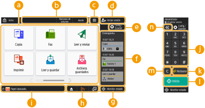 En esta sección se describen los elementos mostrados en la pantalla de <Inicio>.