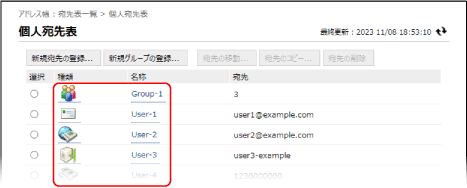 編集する宛先の名称(または番号、種類アイコン)をクリックする