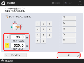 よく使用する定形外サイズの用紙を登録している場合は、[S1]~[S5]を押して呼び出すことができます。