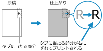 タブ部分にコピーする場合は、インデックス紙用の原稿のタブに当たる部分をずらす幅を入力して、タブ部分のプリント位置を設定します。