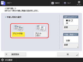[OHPフィルムのサイズ]の[変更]を押し、コピーに使用するOHPフィルムを選択して、[OK]を押します。