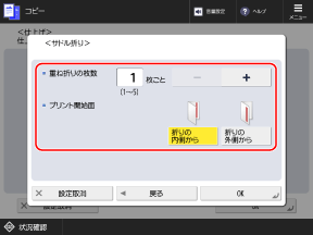 複数枚の用紙を重ねて折る場合は、重ねて折る枚数を指定します。