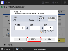 すべてのページを試しコピーした場合は、手順2で入力した部数から 1 部引いた、残りの部数がコピーされます。