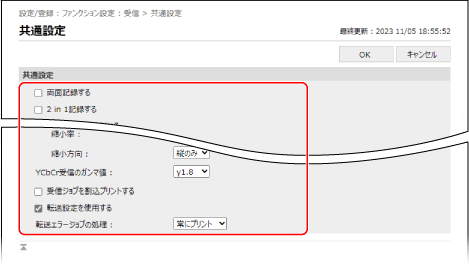 [YCbCr受信のガンマ値]を設定します。送信側と合ったガンマ値に設定することで、原稿に忠実な画像を再現できます。