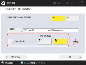 ※グループに含まれる宛先の場合は、[フォルダー名]の設定は無効です。フォルダーを作成するように設定していても、フォルダーは作成されずにファクスが保存されます。