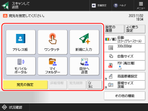 かんたんスキャンでは、宛先の指定や、カラー設定などの基本的な機能をボタン操作で簡単に設定できます。