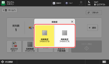 よりきめ細かく原稿をスキャンしたいときは解像度を高く、ファイルサイズを小さくしたいときは解像度を低くします。