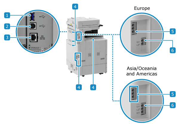 Connect to a telephone line when installing the optional Super G3 2nd Line Fax Board and/or Super G3 3rd/4th Line Fax Board.