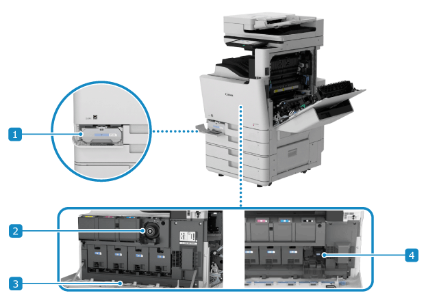 When full with waste toner, remove the old waste toner container and replace with a new one.