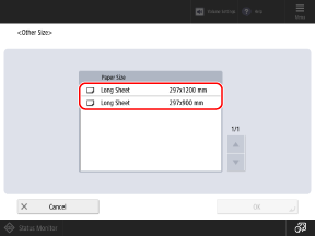 [Other Size] and select the size of the loaded Long Sheet paper.