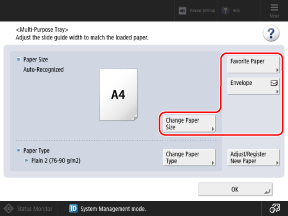 If the paper size and type of the multi-purpose tray are fixed, the above screen is not displayed.