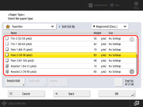 * If the loaded paper type is not displayed in the list, register the paper type.