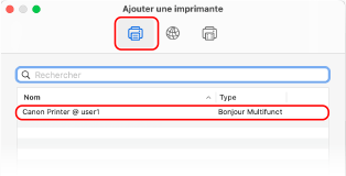 Dans [Réseau], sélectionnez le serveur d'impression pour afficher l'imprimante partagée.