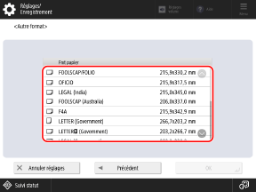 Lorsque [Personnalisé] s'affiche, appuyez sur [Changer format papier]