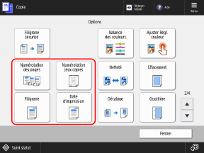 Ajoute des numéros de jeu de copies (pour indiquer l'ordre des jeux de copies) lors de la copie. Ils peuvent être utilisés comme numéros de contrôle pour chaque jeu de copies.