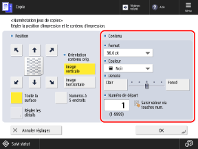 Vous pouvez appuyer sur [Régler les détails] pour ajuster finement la position d'impression ou changer la position d'impression pour la copie recto verso.
