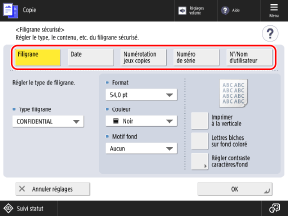 Écran de copieL'écran [Filigrane sécurisé] s'affiche.