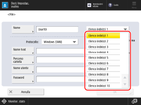 Selezionare l'elenco indirizzi in cui registrare la destinazione. Tipi di rubriche