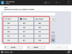 Quando si seleziona un pulsante con una destinazione già registrata, le informazioni registrate vengono sovrascritte.