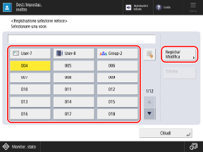 È anche possibile registrare destinazioni nei pulsanti di selezione veloce dalla schermata di scansione (Scansione e invio) o fax.