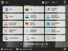 Il fatto che la schermata di selezione venga visualizzata o meno dipende dalle impostazioni della macchina e dai privilegi dell'utente che ha effettuato l'accesso. Configurazione delle operazioni e delle visualizzazioni della schermata consentite agli utenti