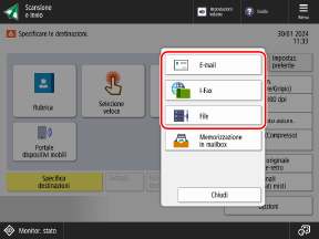In base alle impostazioni della macchina, potrebbe anche essere possibile specificare le destinazioni fax nella schermata di scansione.