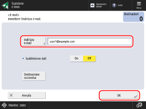 Quando si specifica una destinazione selezionando un lavoro di scansione nel registro, è possibile premere [Destinazione successiva] e specificare un'ulteriore destinazione dello stesso tipo inserendo direttamente le informazioni.