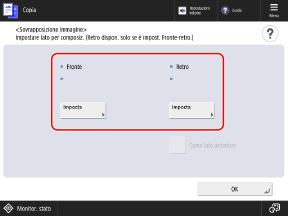* Per configurare la stessa impostazione per il fronte e per il retro, impostare prima il fronte e poi selezionare [Come lato anteriore].