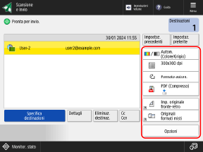È possibile modificare la destinazione e le impostazioni di scansione richiamate prima dell'invio.