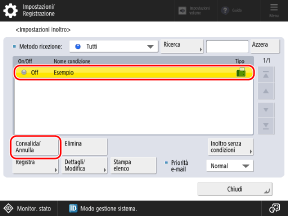 Selezionare una condizione di inoltro registrata e premere [Convalida/Annulla].