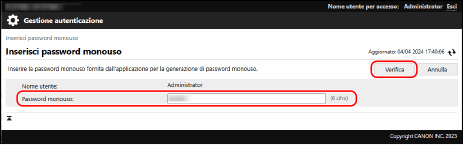 Quando viene visualizzata la schermata di immissione della password monouso