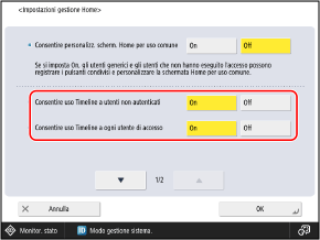 Impostare su [On] per mostrare la sequenza temporale comune agli utenti non autenticati quando gli utenti non hanno effettuato l'accesso alla macchina o sono utenti ospiti.