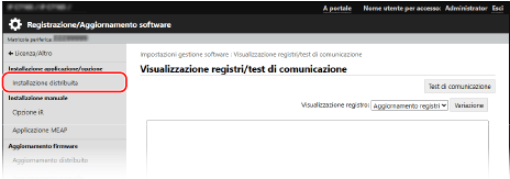 Fare clic su [Licenza/Altro] [Registrazione/Aggiornamento software] [Visualizzazione registri/test di comunicazione].