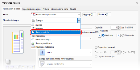 In [Metodo di stampa], selezionare [Stampa protetta].