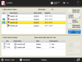 Consente di stampare i documenti selezionati in via prioritaria e di verificare i dettagli dei documenti.