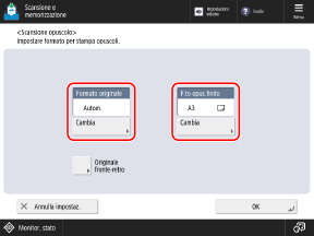 Impostare il formato dell'originale e il formato carta, in base alle proprie esigenze.