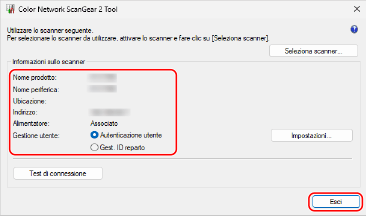 Viene visualizzata la schermata [Color Network ScanGear 2 Tool].