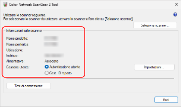 Se la macchina non viene visualizzata in [Informazioni sullo scanner], fare clic su [Seleziona scanner] e selezionare la macchina.