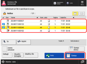 È possibile selezionare e stampare contemporaneamente fino a 100 file nella stessa mailbox.