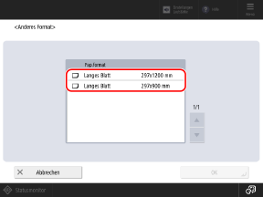 [Anderes Format], und wählen Sie das Format des eingelegten langen Papiers.