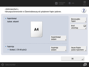 Wenn das Papierformat und der Papiertyp für die Mehrzweckkassette festgelegt sind, wird der obige Bildschirm nicht angezeigt.