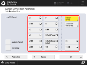 Informationen zu den Papierformaten, die angezeigt werden, wenn [Anderes Format] gedrückt wird, finden Sie wie folgt: