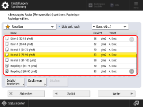 Verwenden Sie das Bedienfeld, um bevorzugtes Papier zu registrieren. Sie können bevorzugtes Papier nicht über Remote UI von einem Computer aus registrieren.