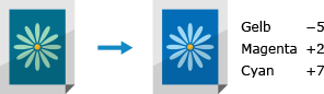 Passen Sie die Farbbalance von Gelb, Magenta, Cyan und Schwarz an, wenn Sie in Farbe drucken. Sie können die Werte der drei Dichtebereiche für jede Farbe anpassen.