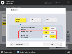 Wenn die erste Seite des Originals in einem Bericht gedruckt werden soll, setzen Sie [Bericht mit SE Bild] auf [Ein].