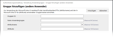 Geben Sie den Attributnamen (Firmenname, Abteilung, Position usw.) ein, der für die Benutzergruppe aus den im Authentifizierungsserver registrierten Attributnamen festgelegt werden soll.